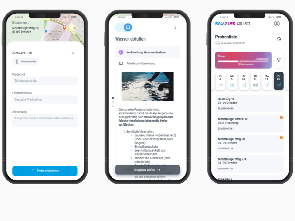 SAMPLES verfügt über eine Vielzahl smarter Features und Funktionen und ist damit für den Einsatz in fast allen Branchen und für die meisten Anwendungsfelder ideal geeignet. Darüber hinaus sind spezielle Branchenlösungen, wie bspw. Outdoor-Funktionalitäten, Probennahme-App, HL7 FHIR oder eine Schnittstelle für den XWasser-Standard verfügbar.